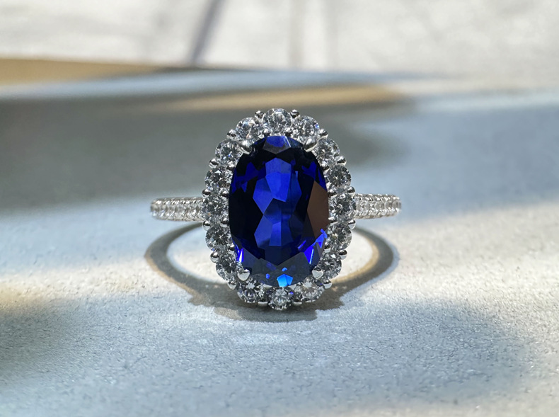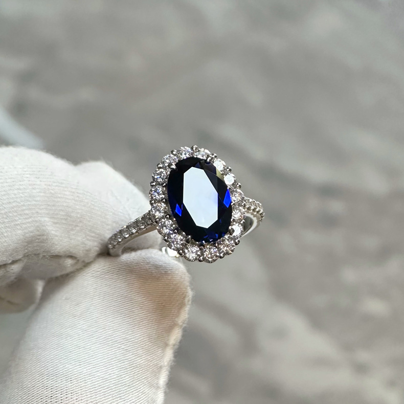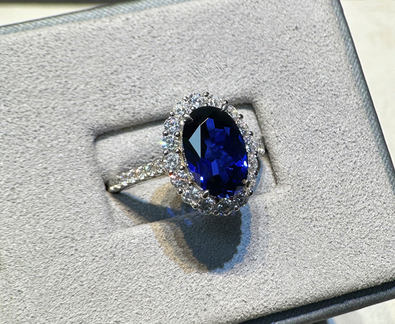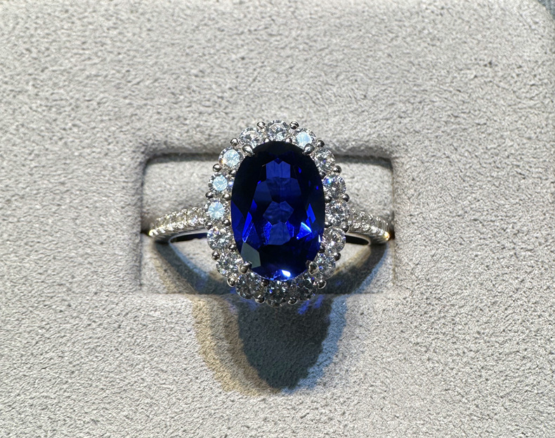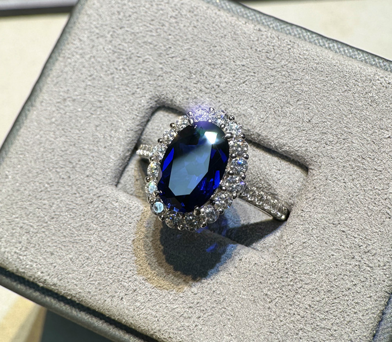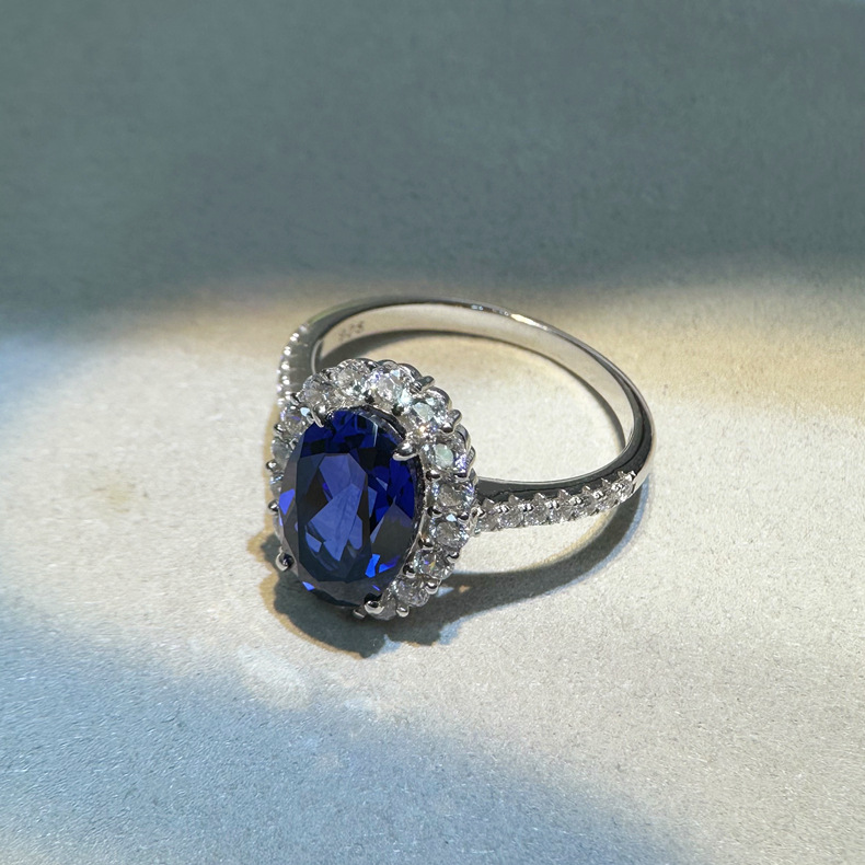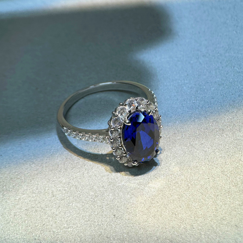 Classic Design: Elegant oval-shaped artificial sapphire ring with timeless appeal