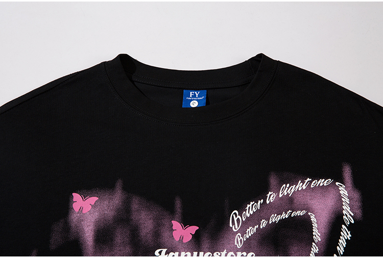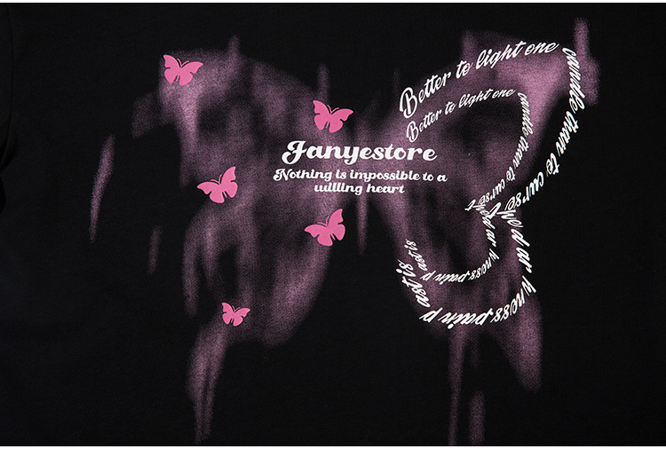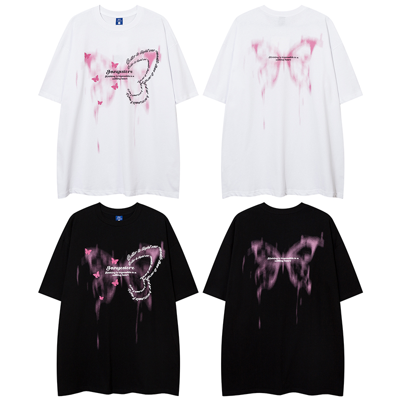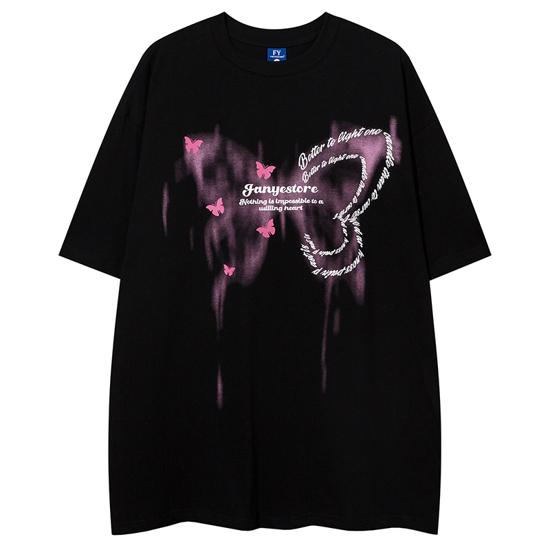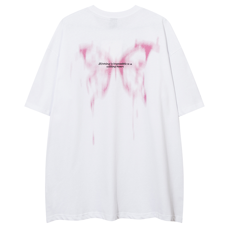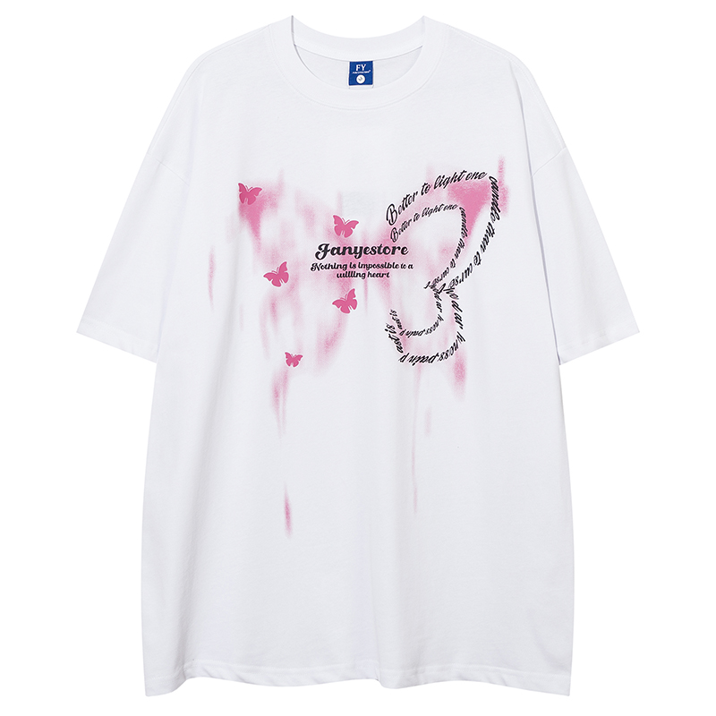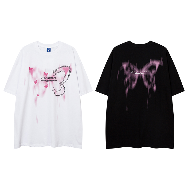 Blurred Butterfly Print Cotton Short-Sleeve T-Shirt