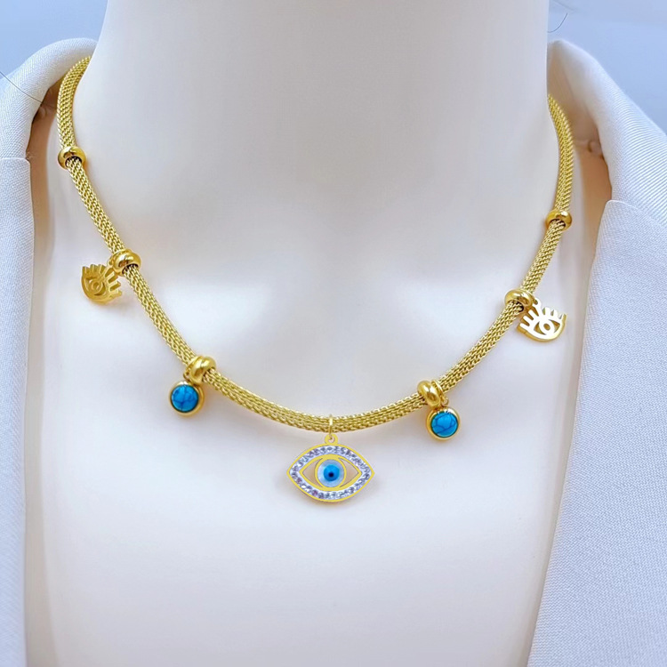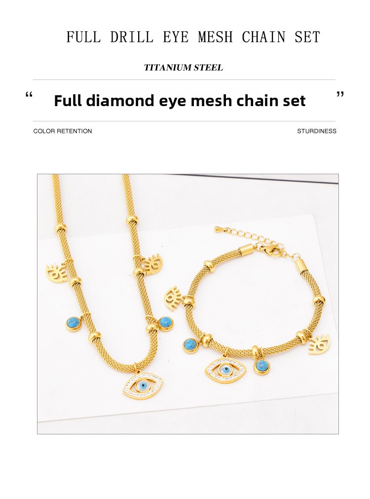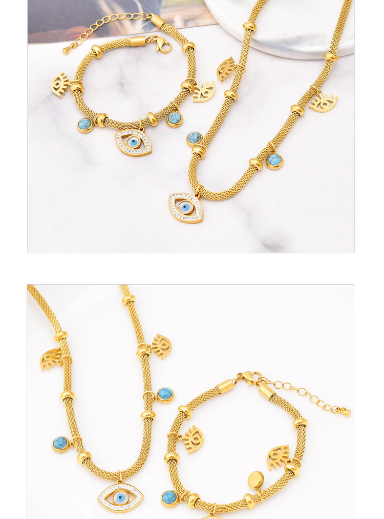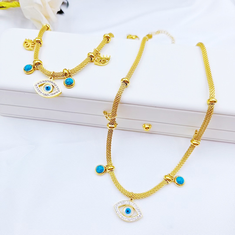 Diamond Eye Turquoise Pendant Necklace Bracelet Set
