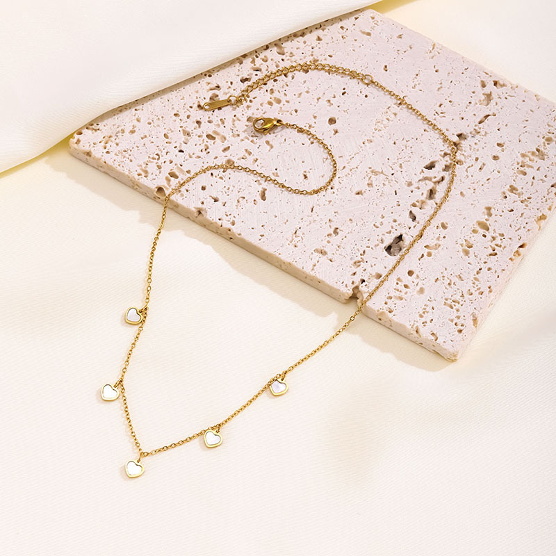 Elegant Design: Features a delicate heart-shaped pendant with white shell accents, perfect for a stylish and sophisticated look.