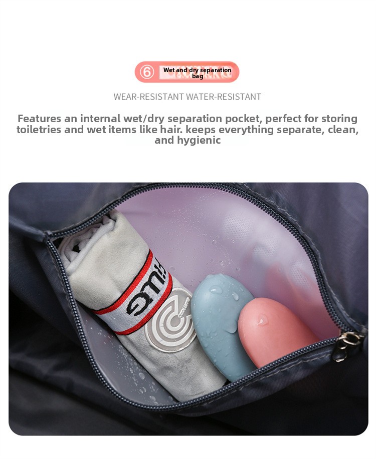 Dry-Wet Separation: Separate compartments to keep wet and dry items organized.