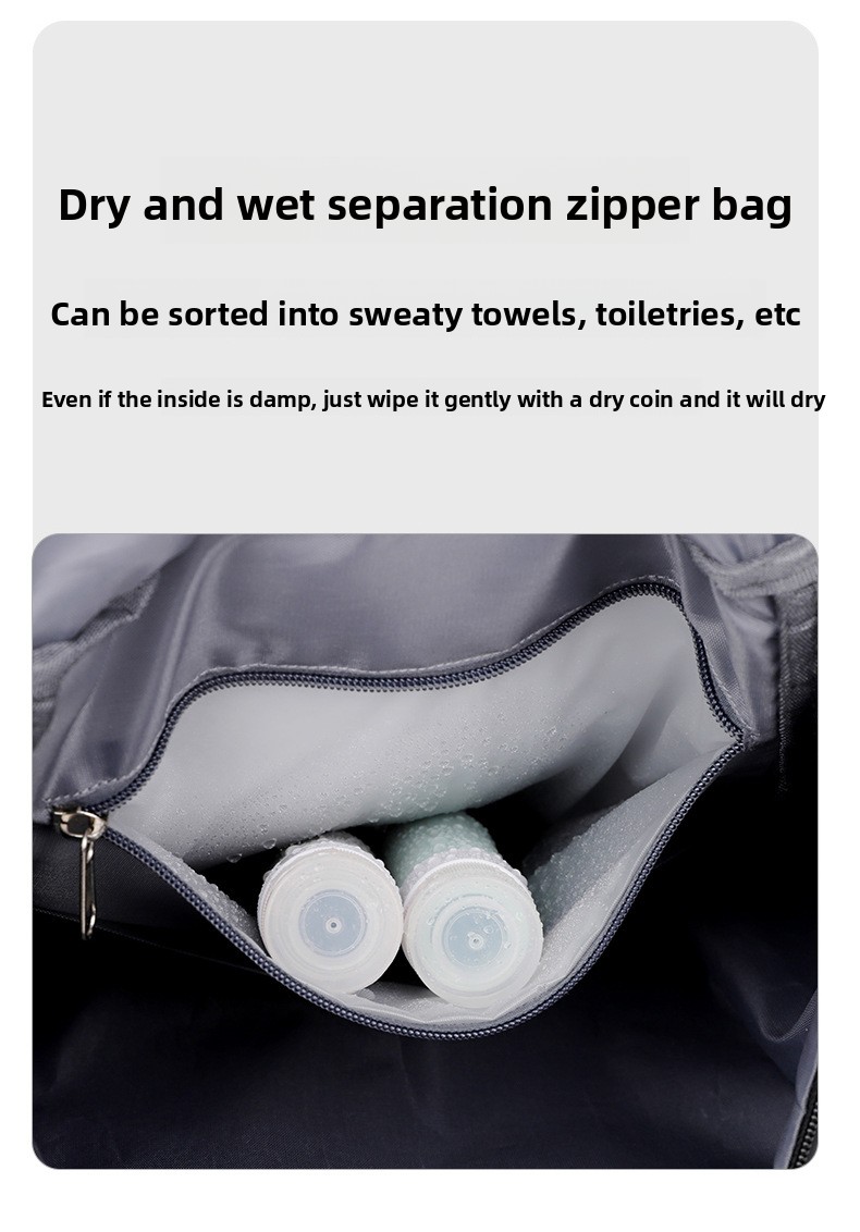 Dry & Wet Separation: Separate compartments to keep wet and dry items organized.