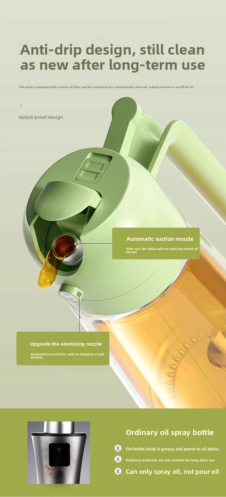 Fine Mist Spray: Provides even and controlled oil distribution.