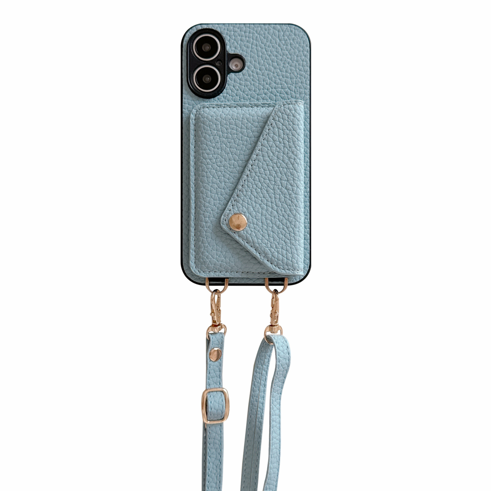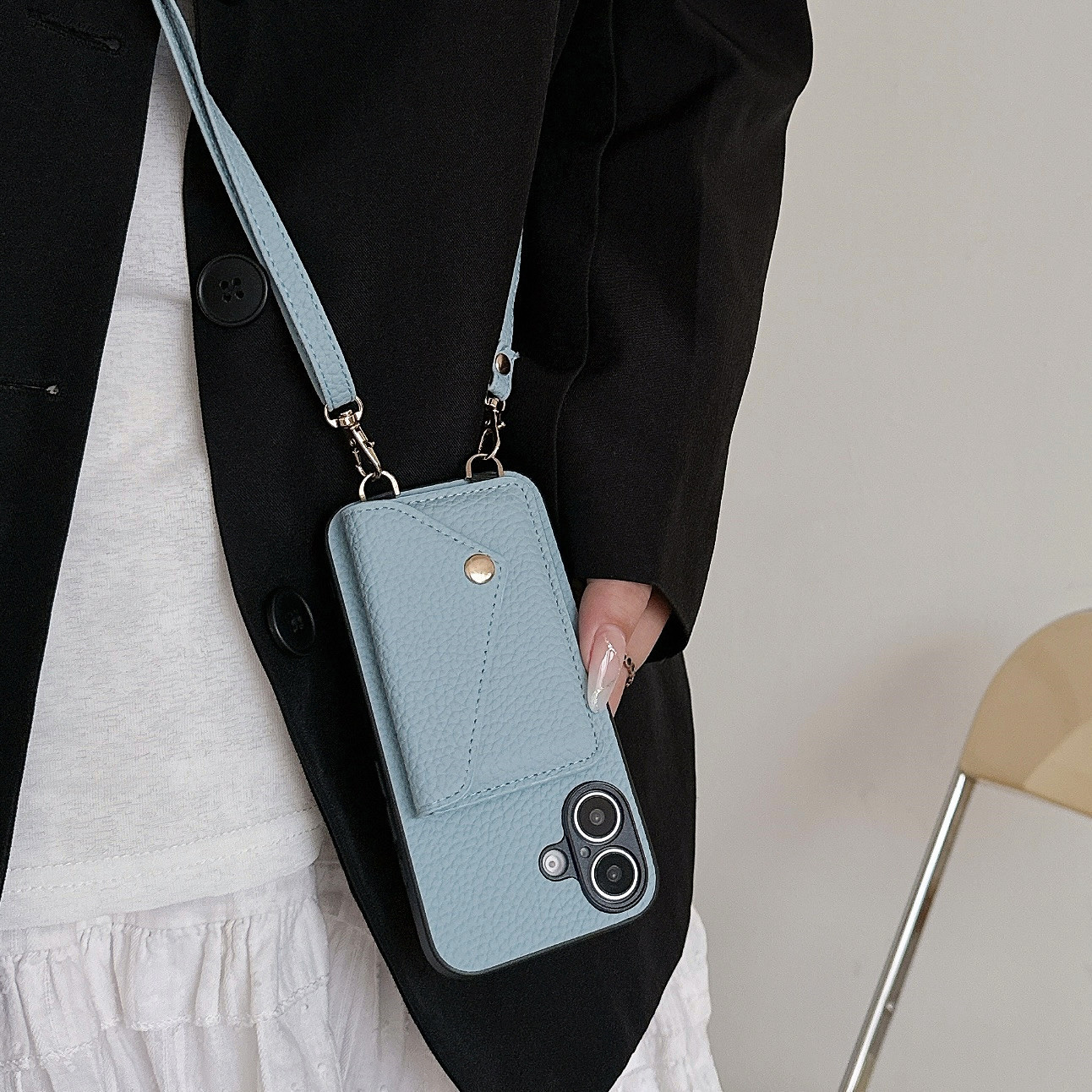 Stylish Design: Features a pebbled texture and diagonal lanyard for a fashionable look.