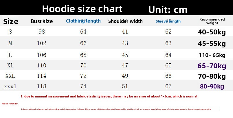 Sizes: S, M, L, XL, 2XL, 3XL.
