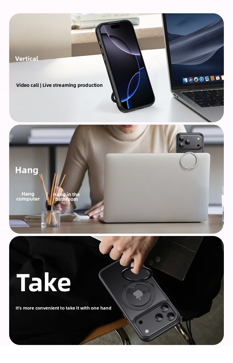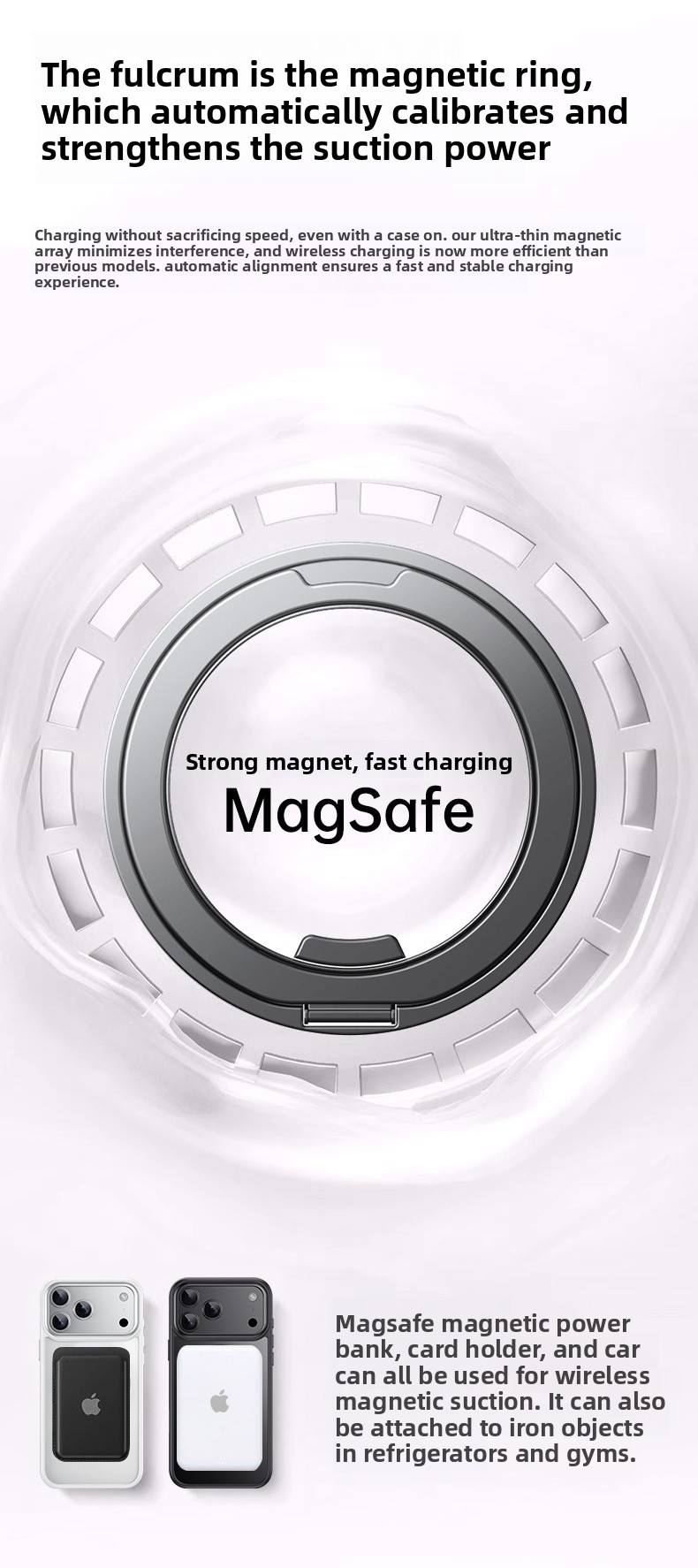 Magnetic 360 Rotation: Features a built-in magnetic ring for 360-degree rotation, providing flexible viewing angles.