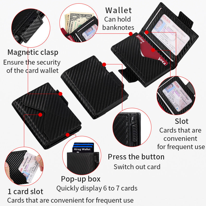 Multi-Functional Storage: Includes slots for cards, cash, IDs, and more.