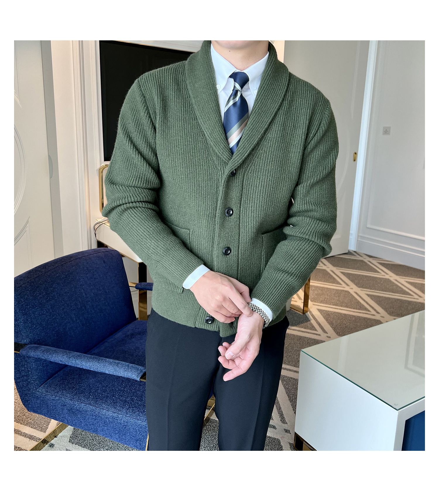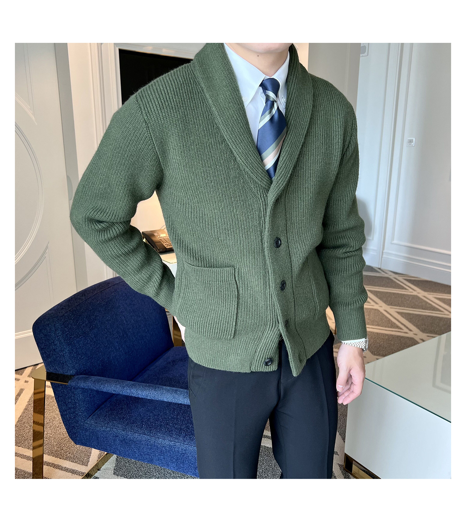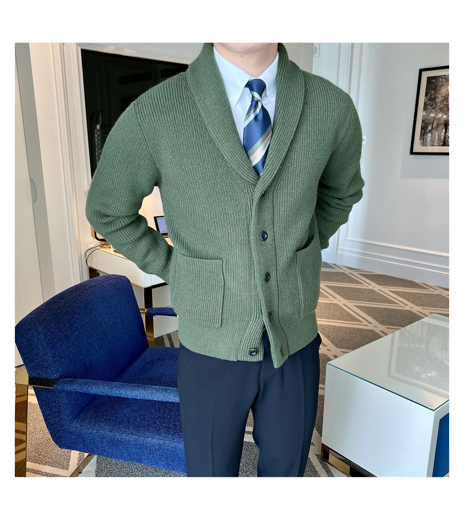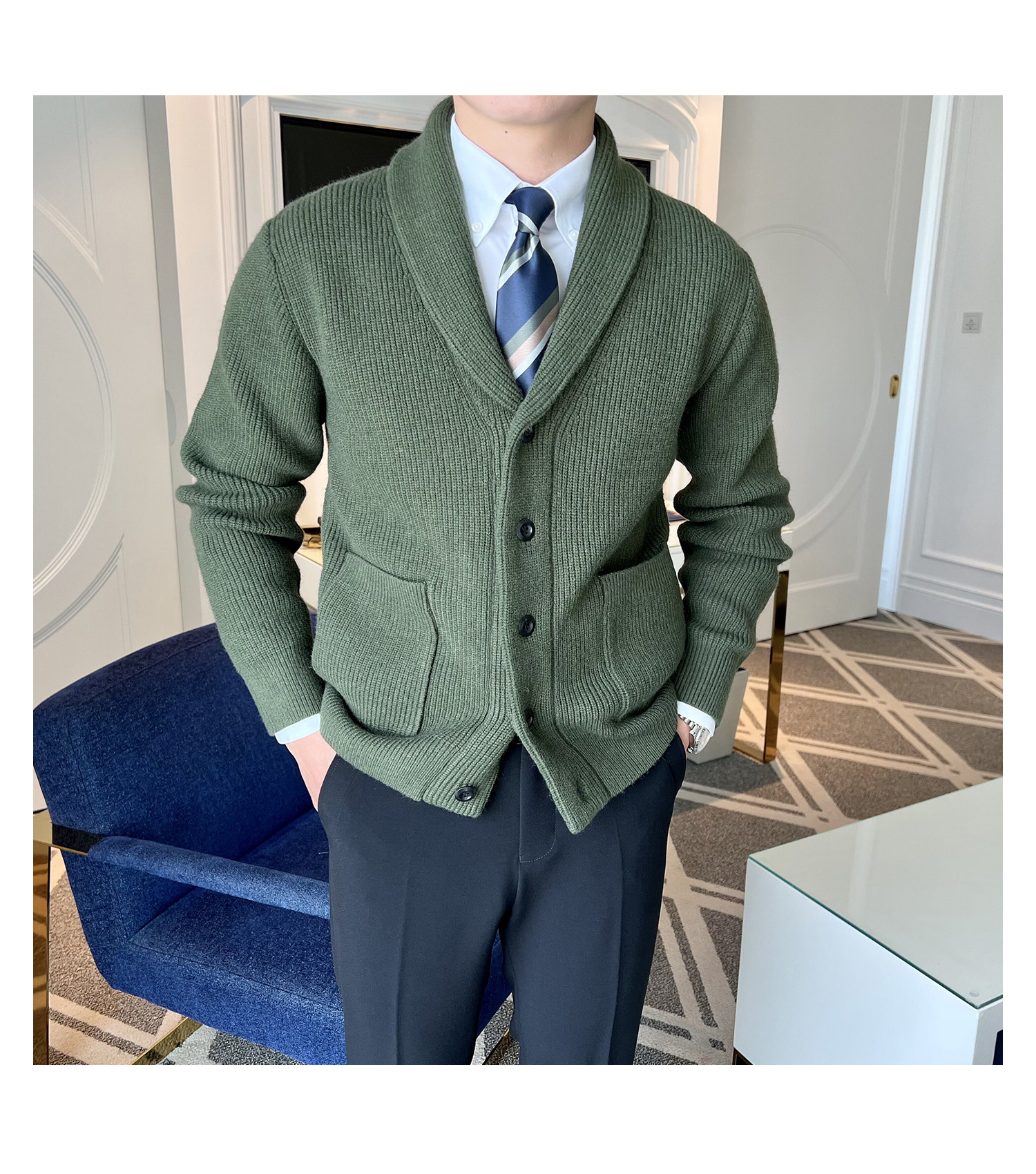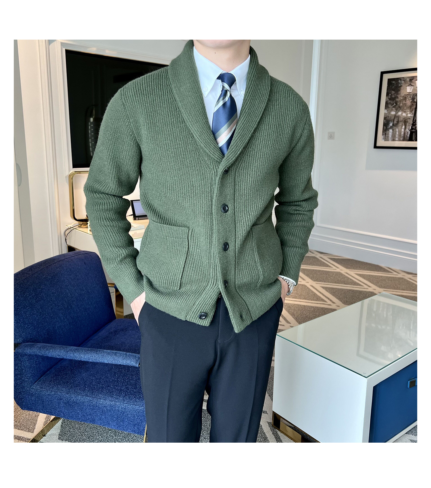 Men's Retro Slim Fit Green Collar Knitwear Cardigan