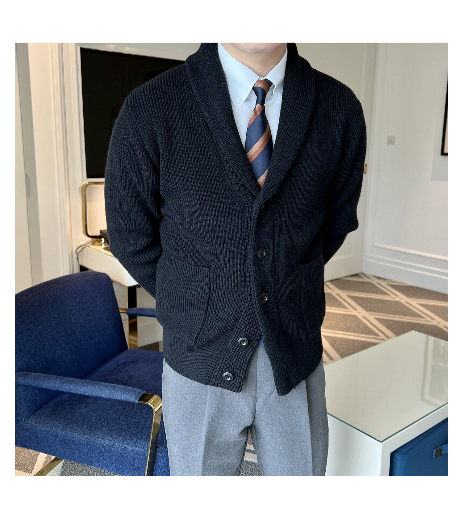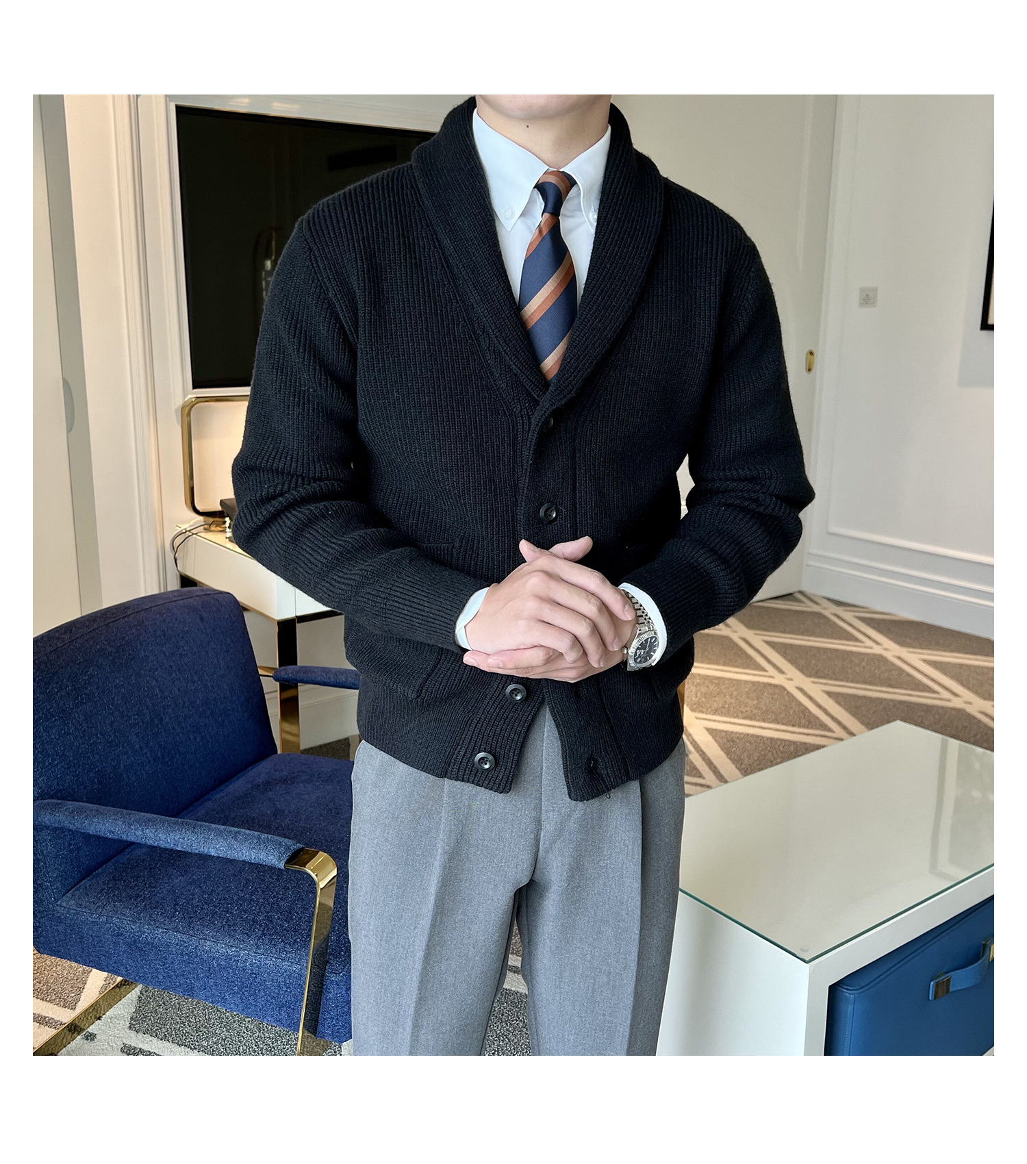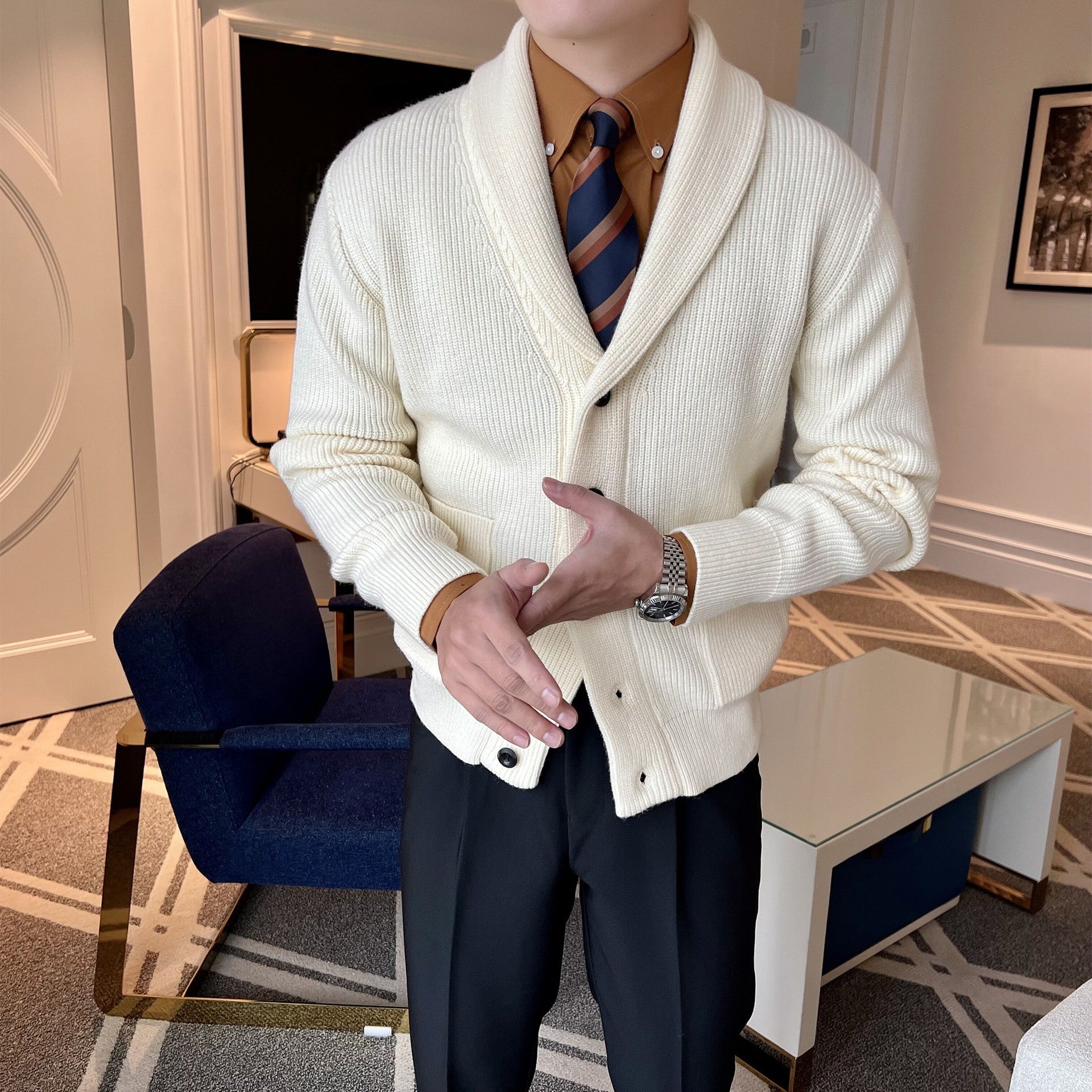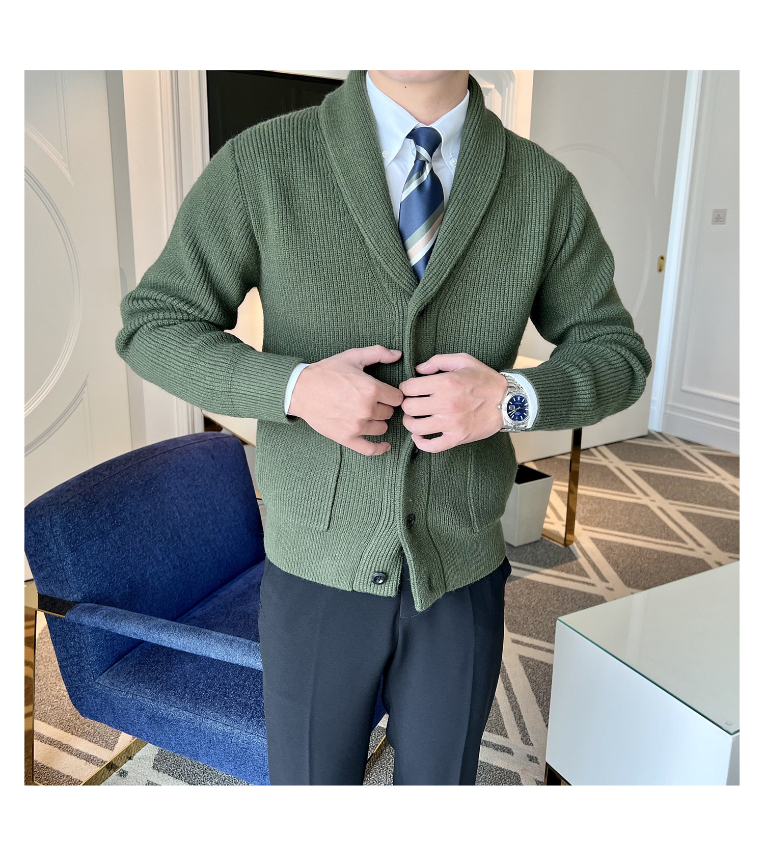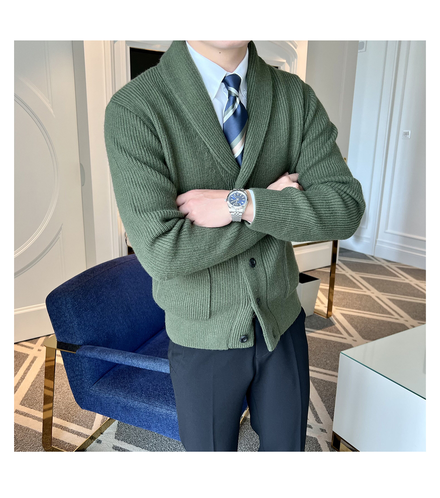 Men's Retro Slim Fit Green Collar Knitwear Cardigan