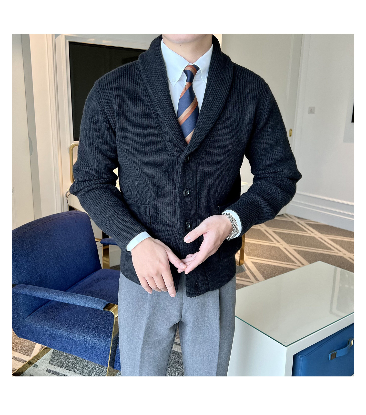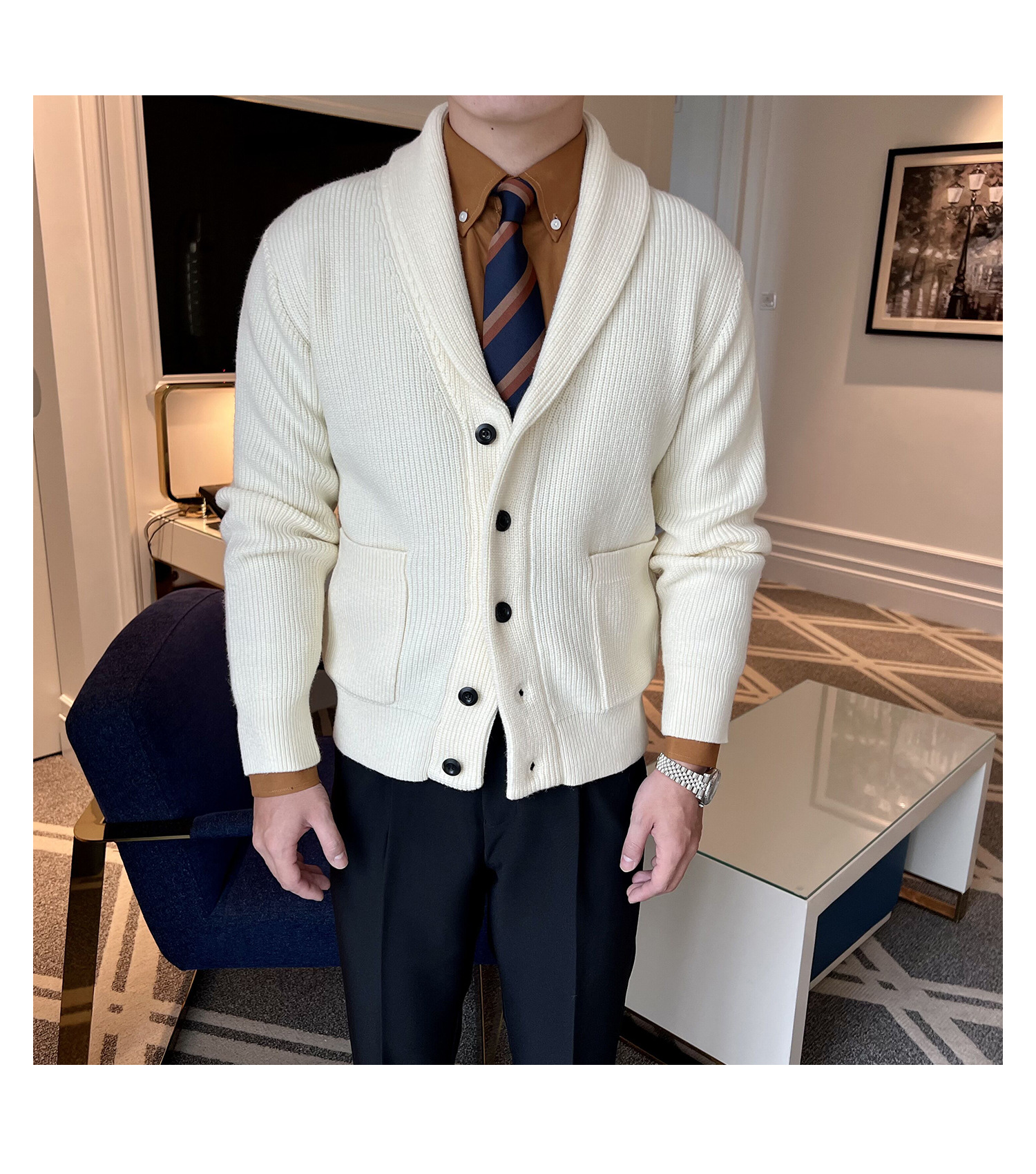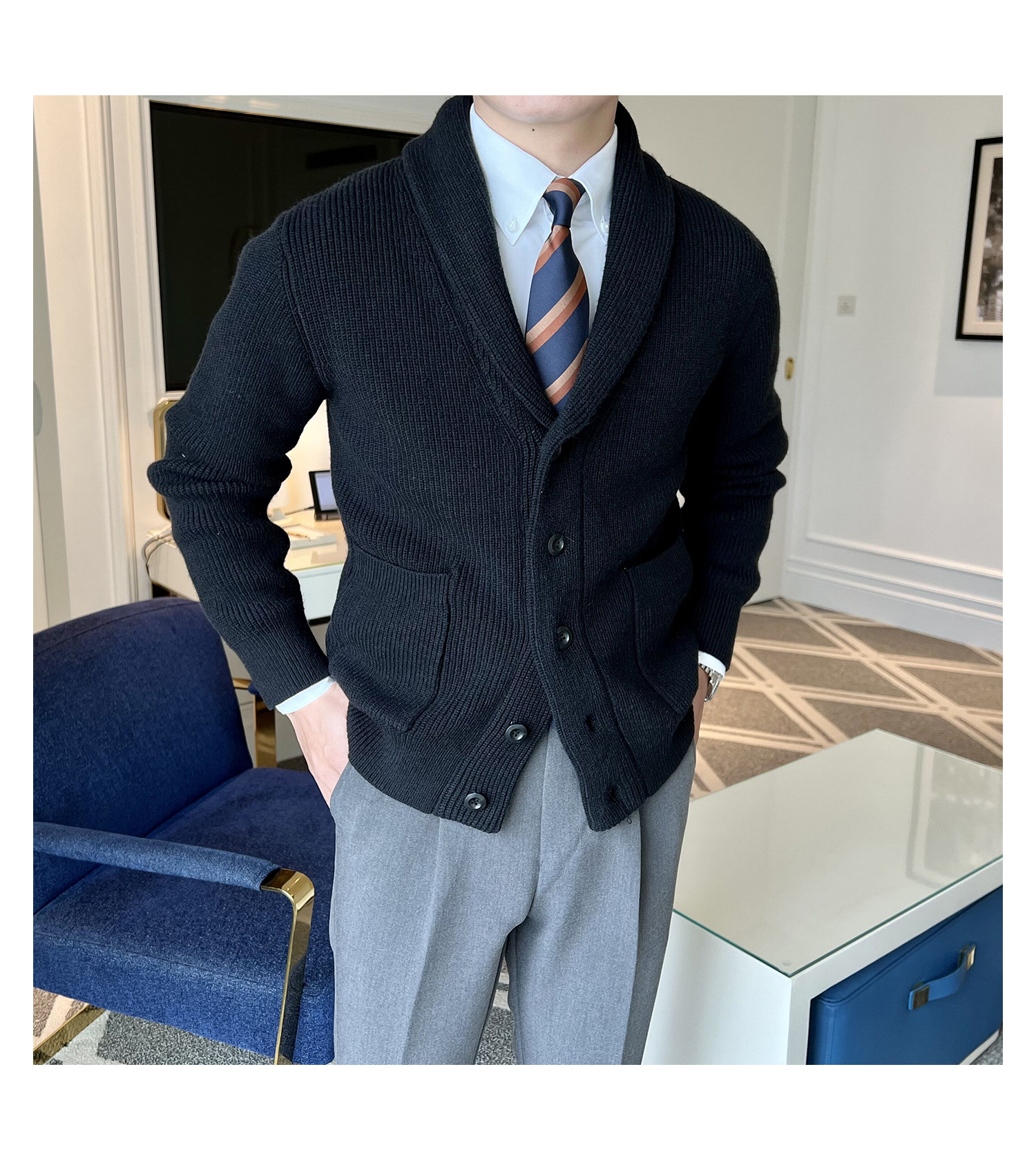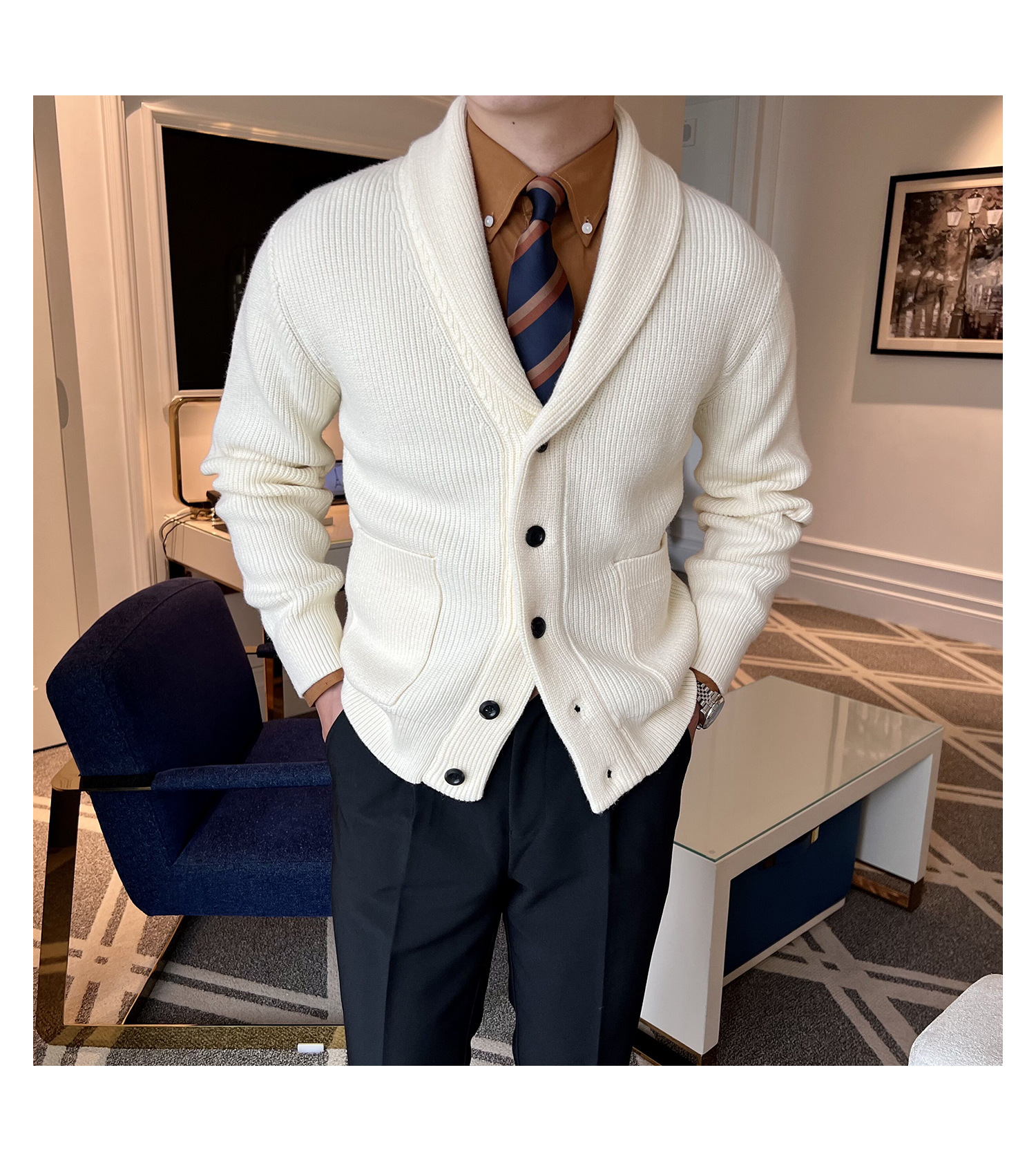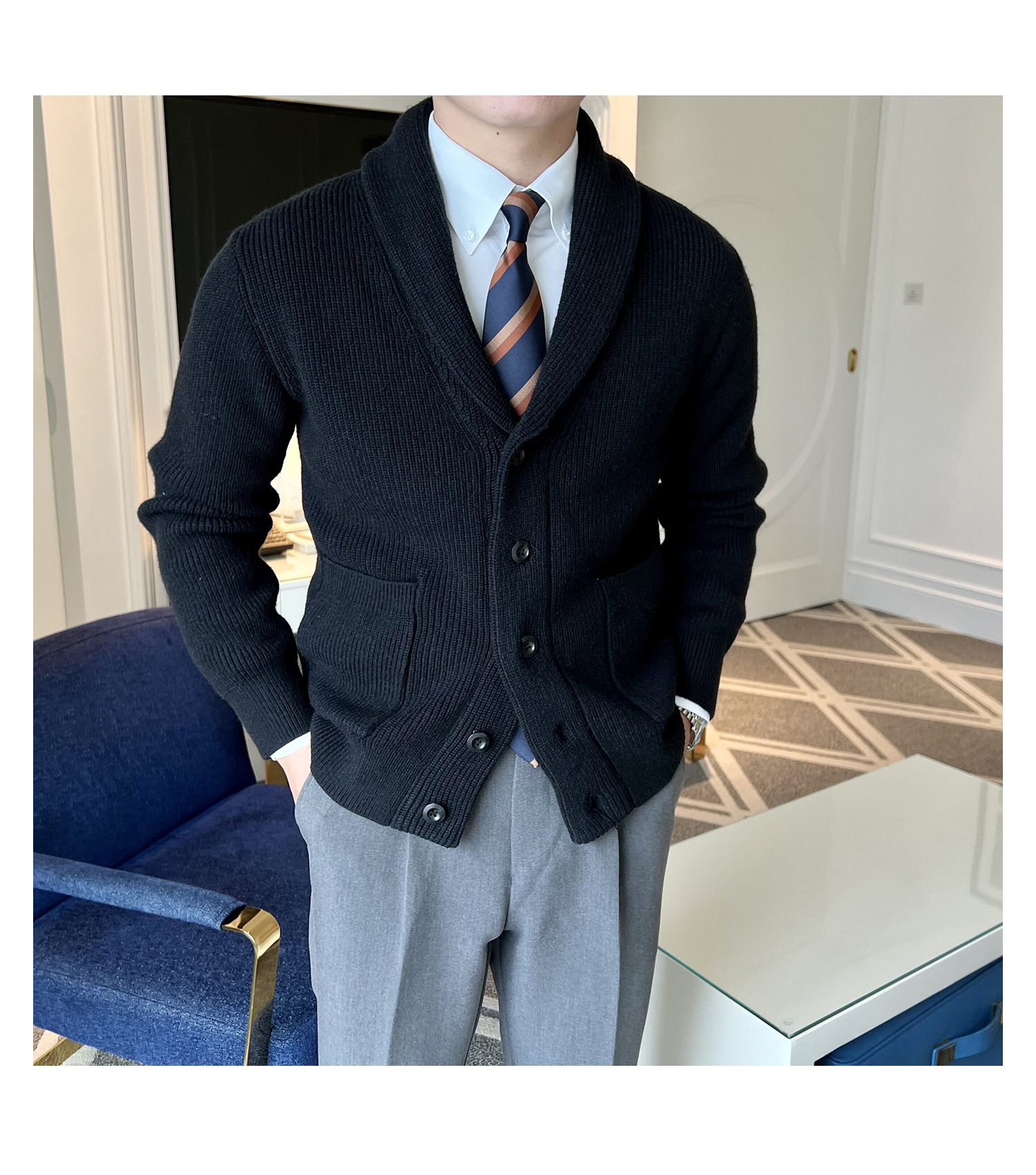 Men's Retro Slim Fit Green Collar Knitwear Cardigan