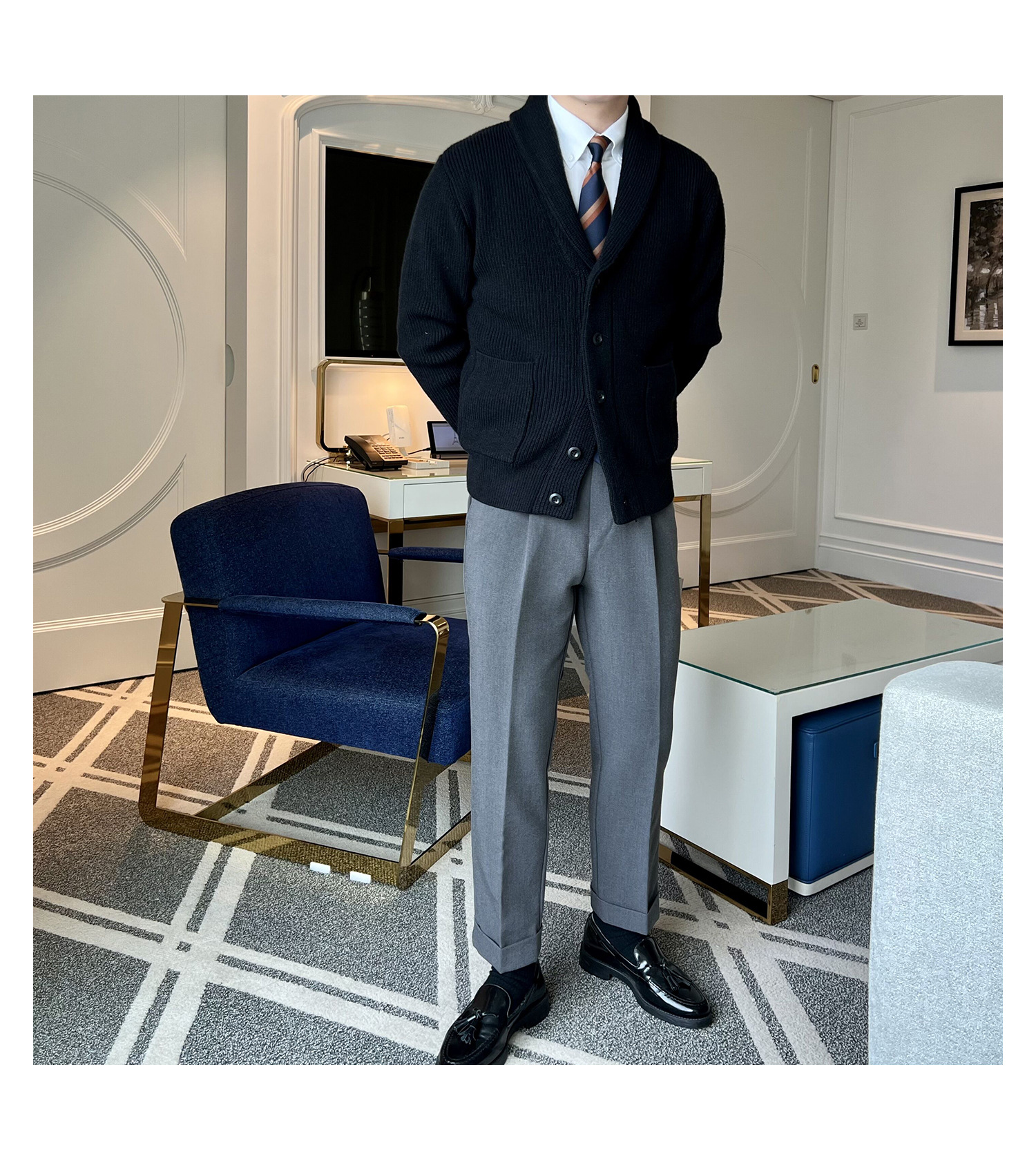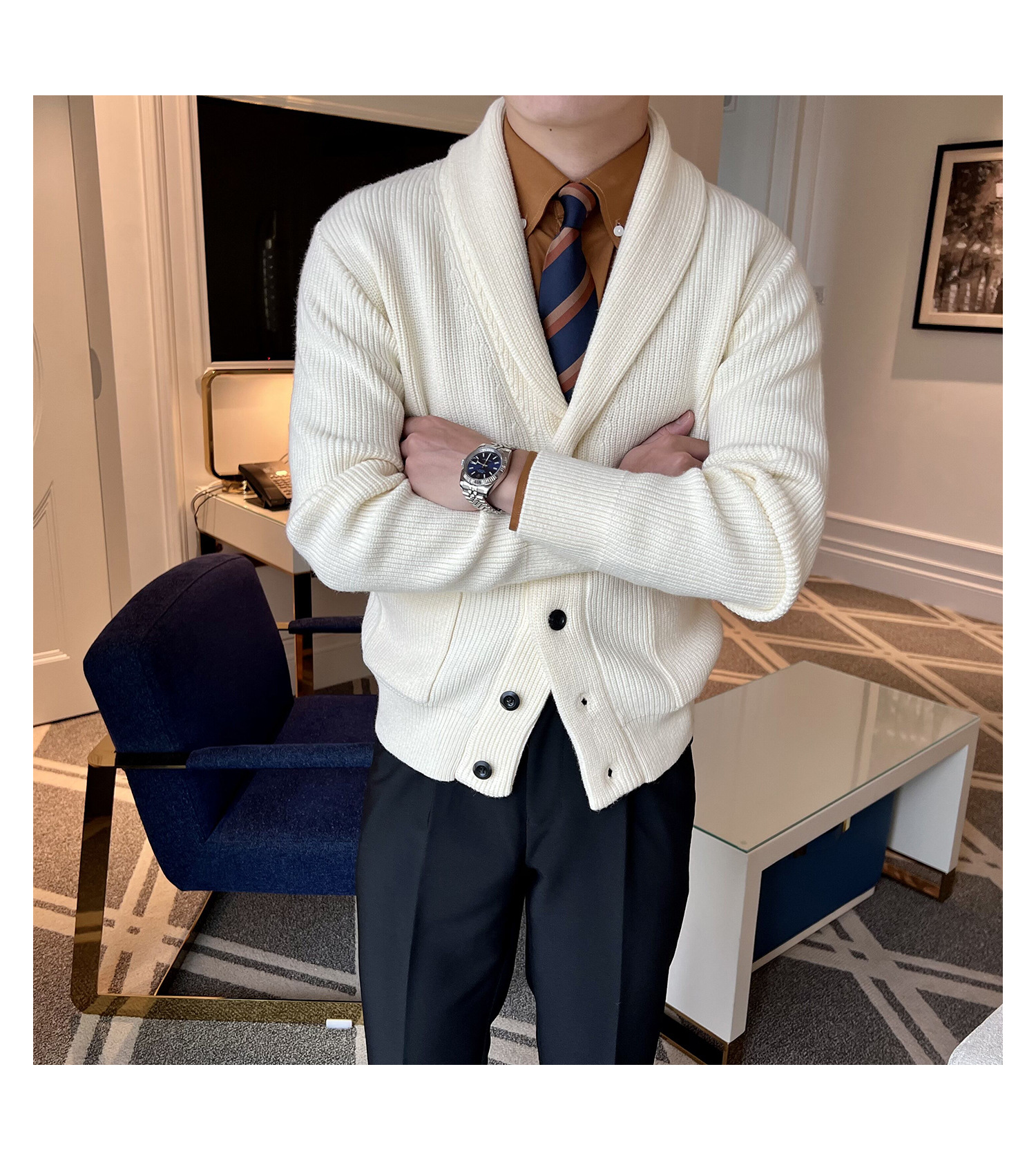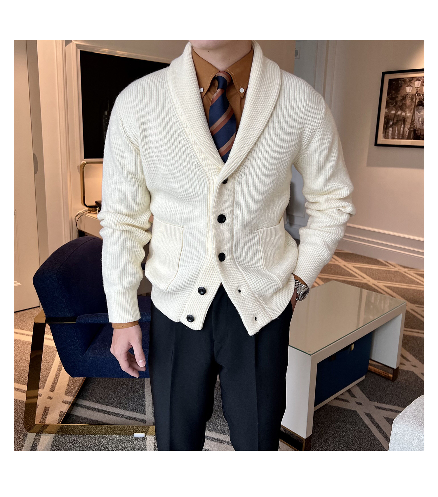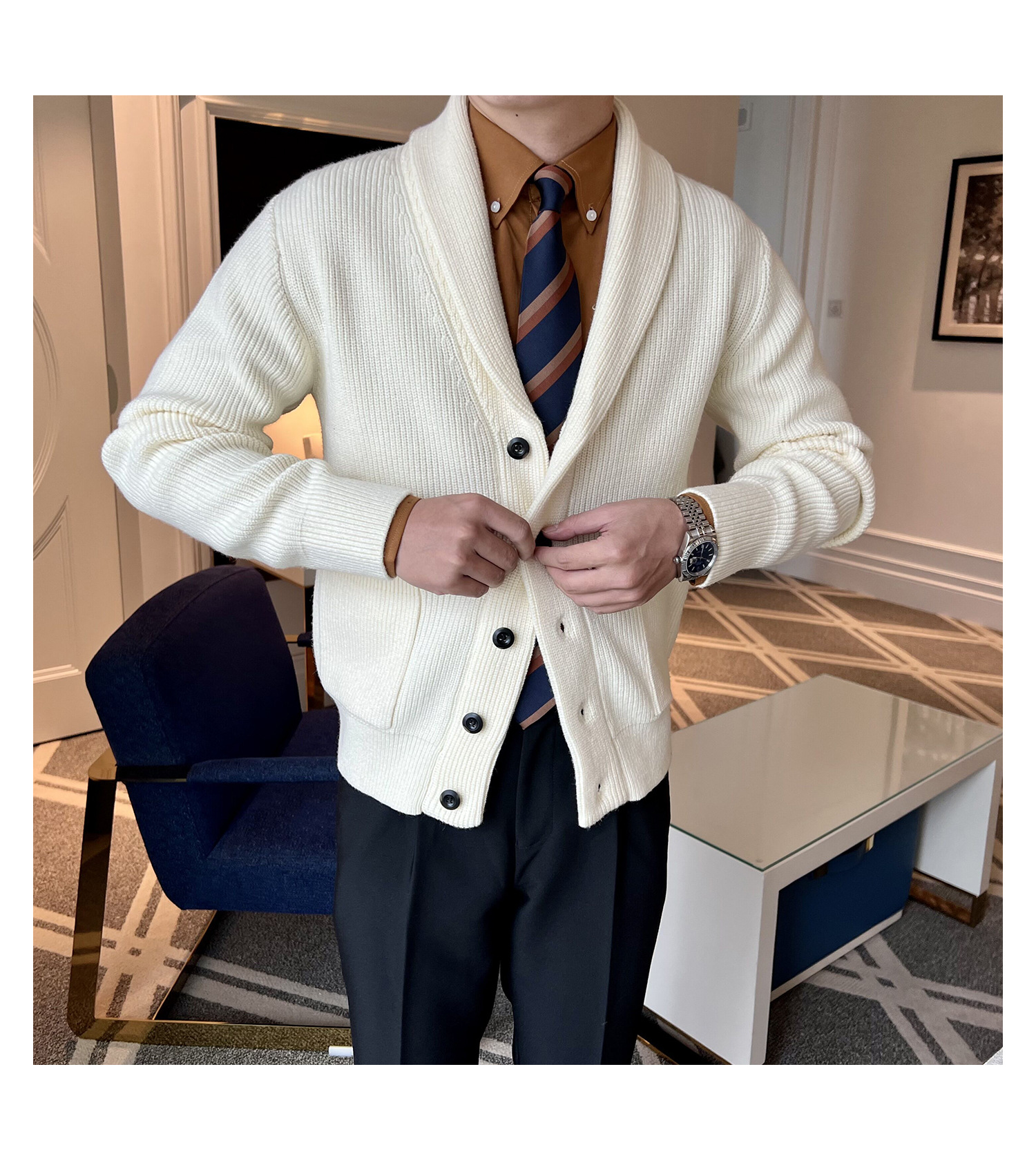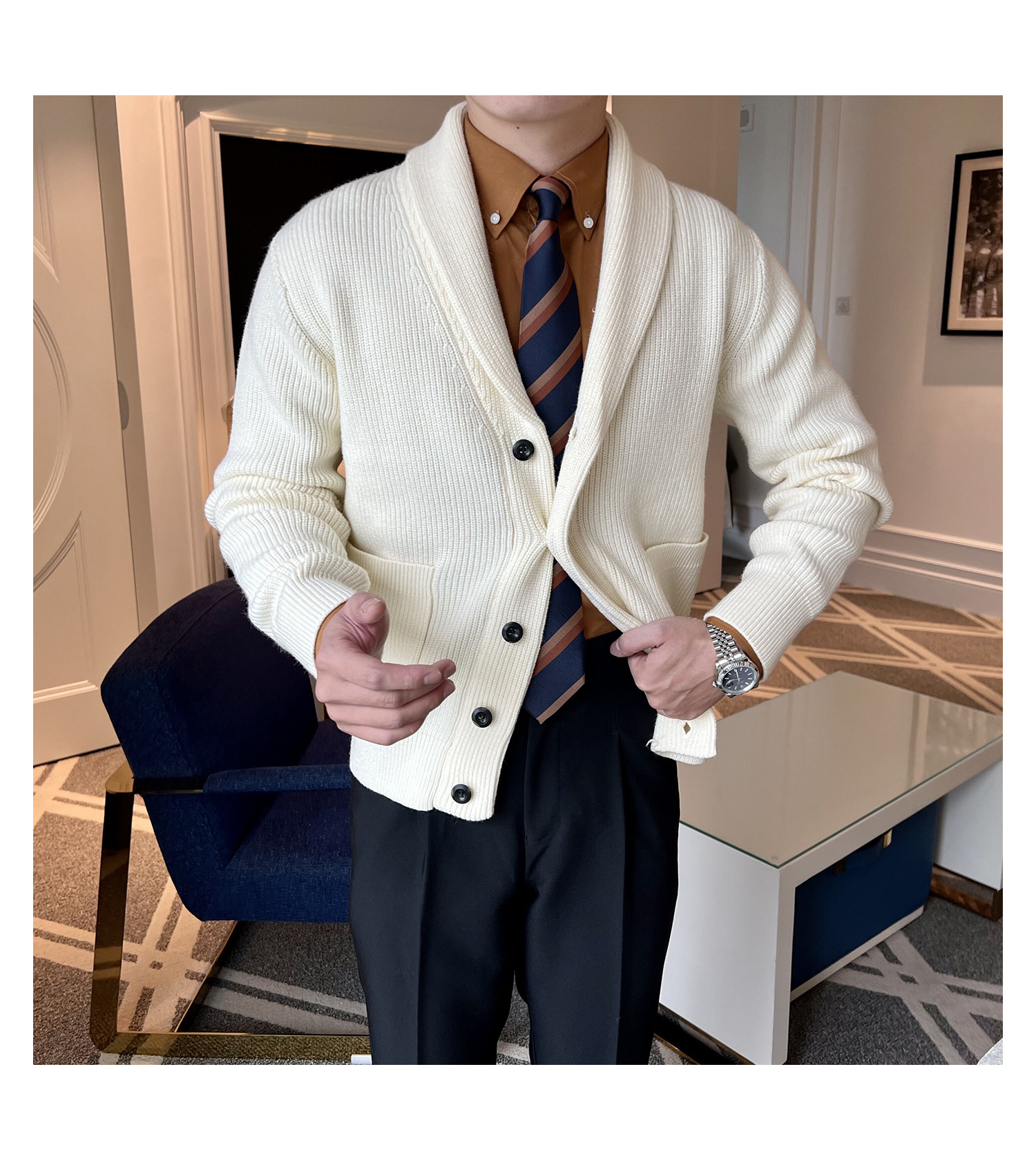Men's Retro Slim Fit Green Collar Knitwear Cardigan