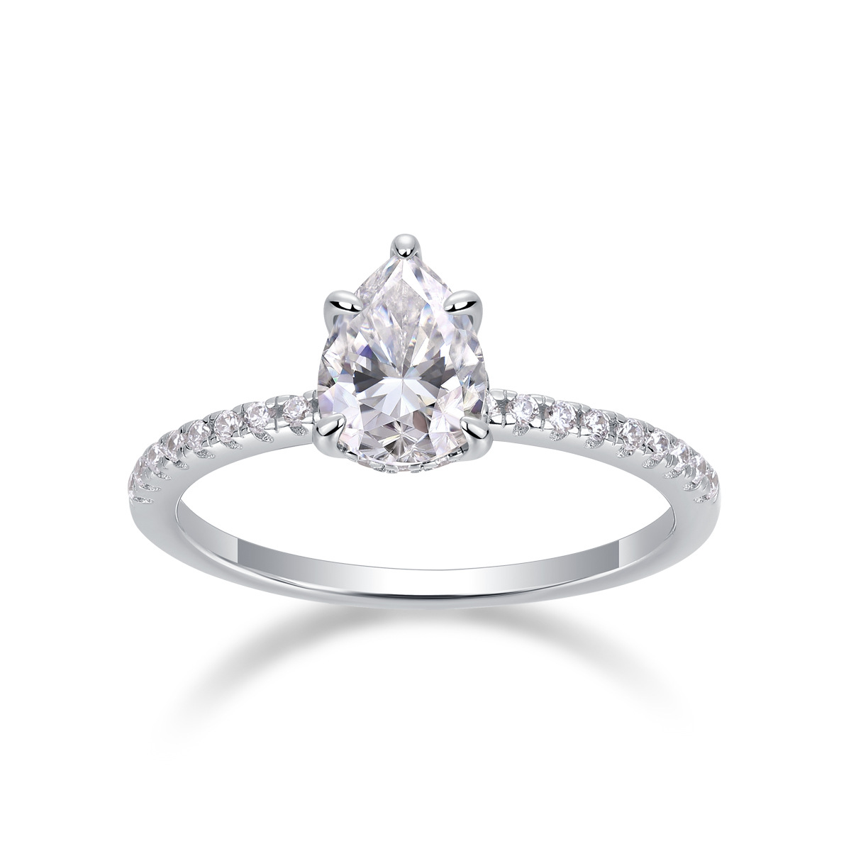 Pear-shaped Moissanite: Unique and elegant 6*8mm pear-cut moissanite stone.