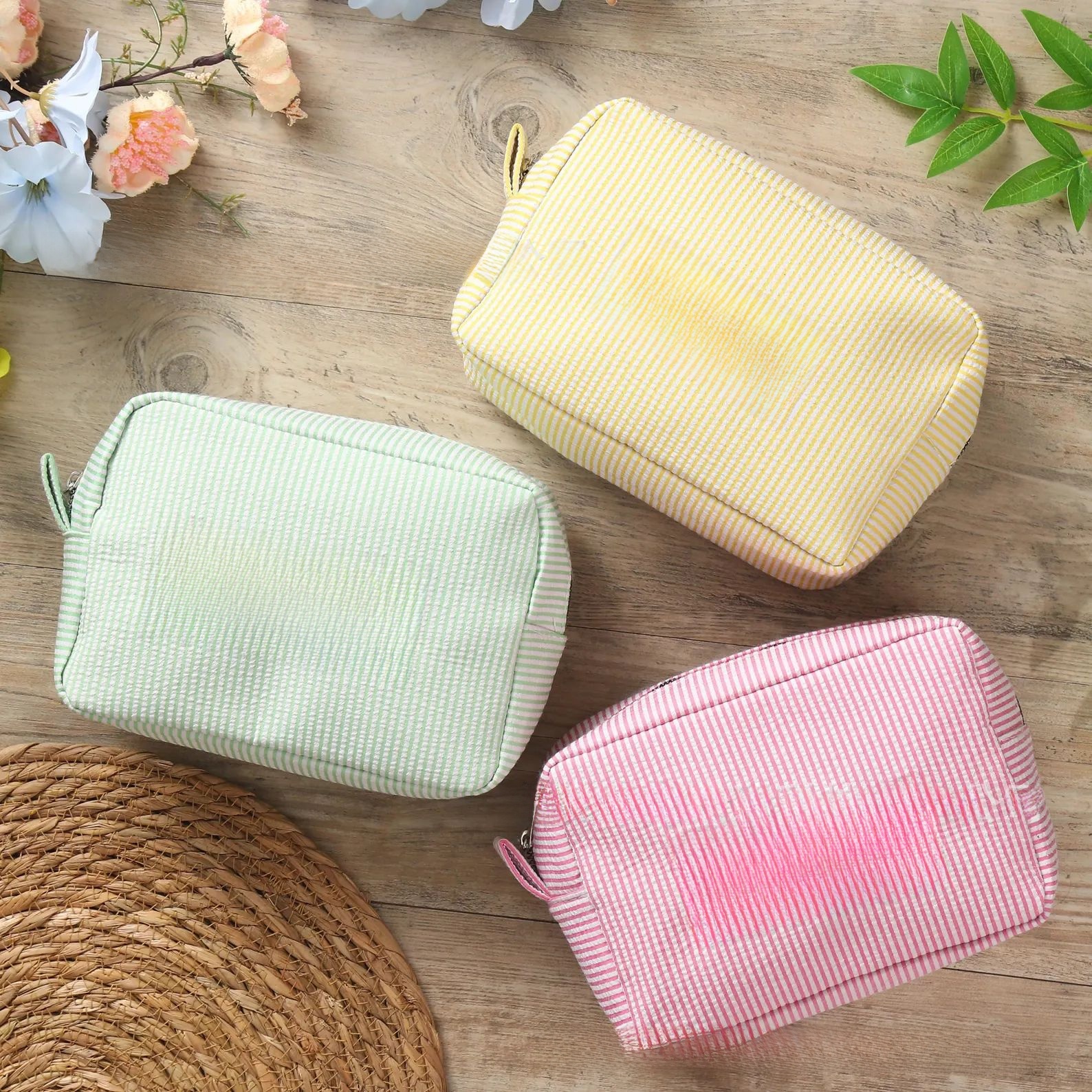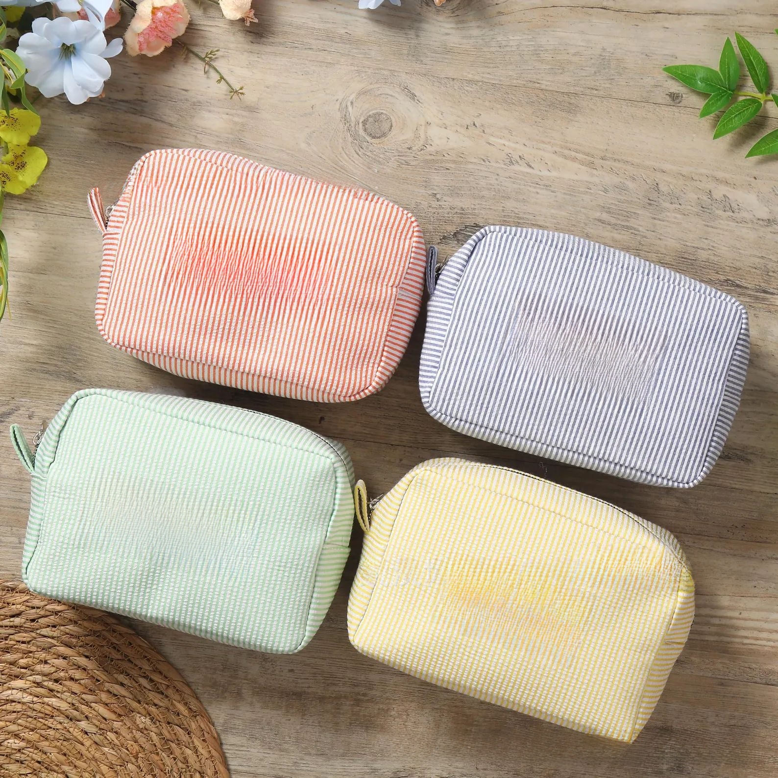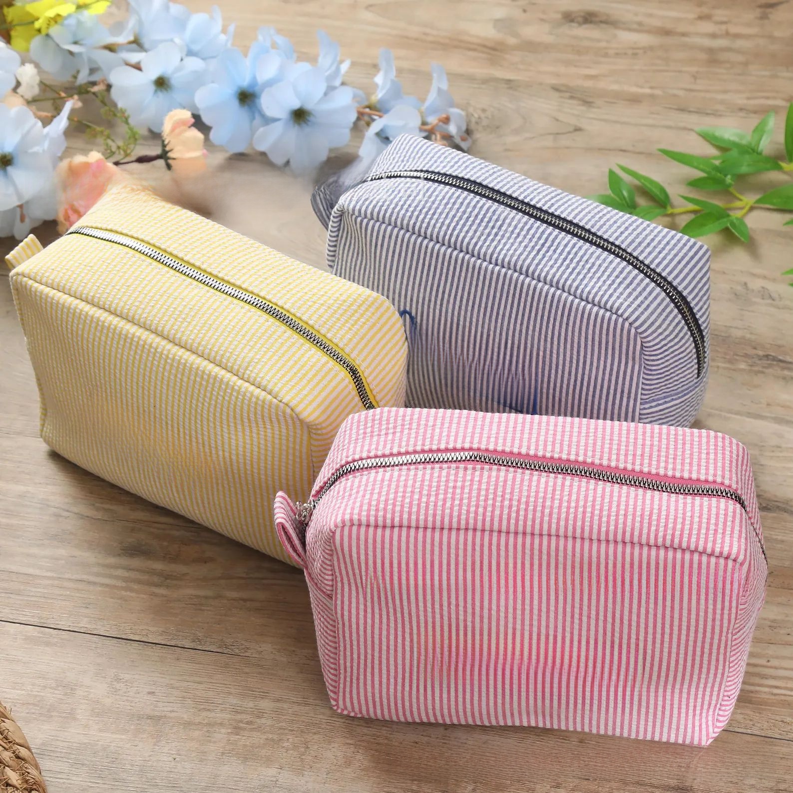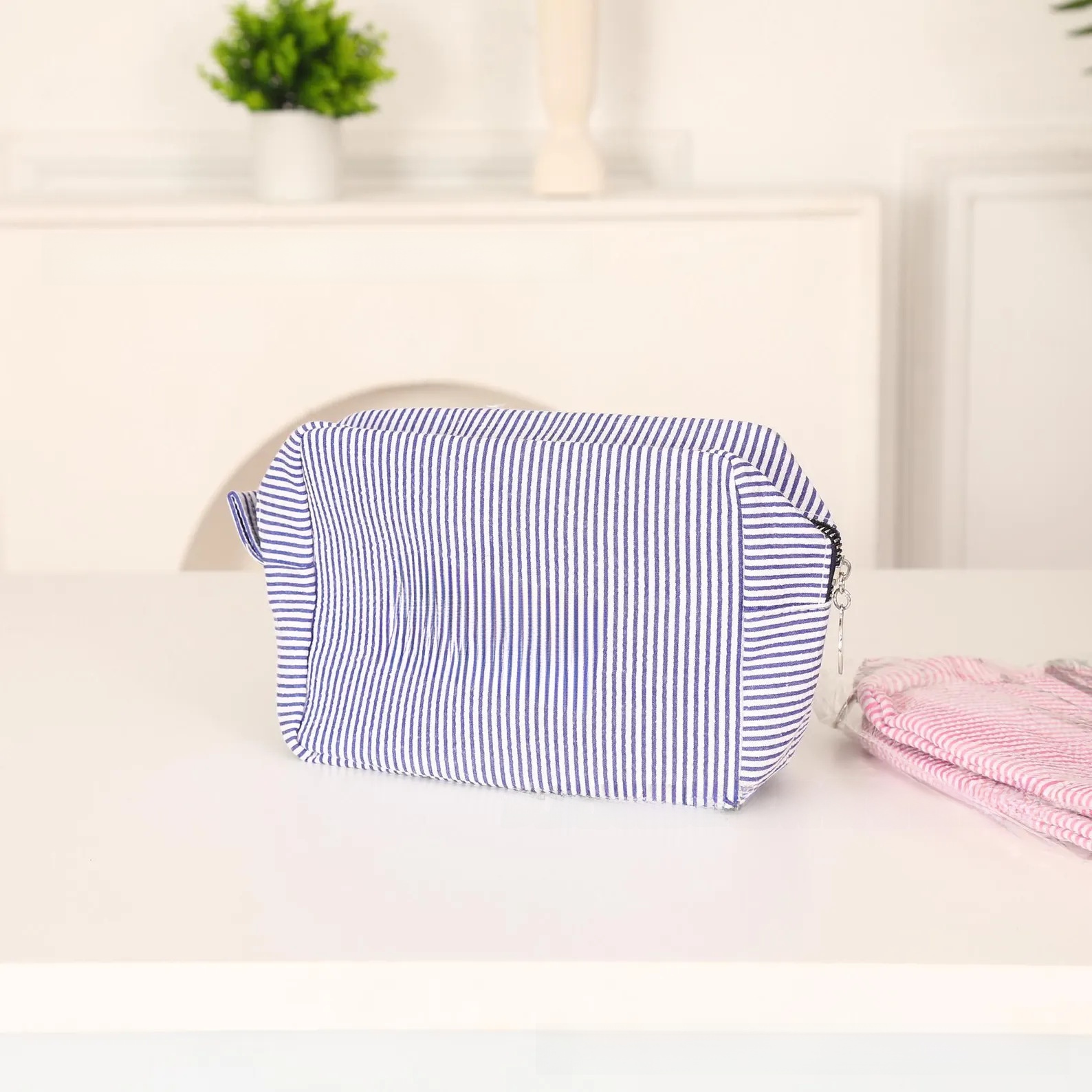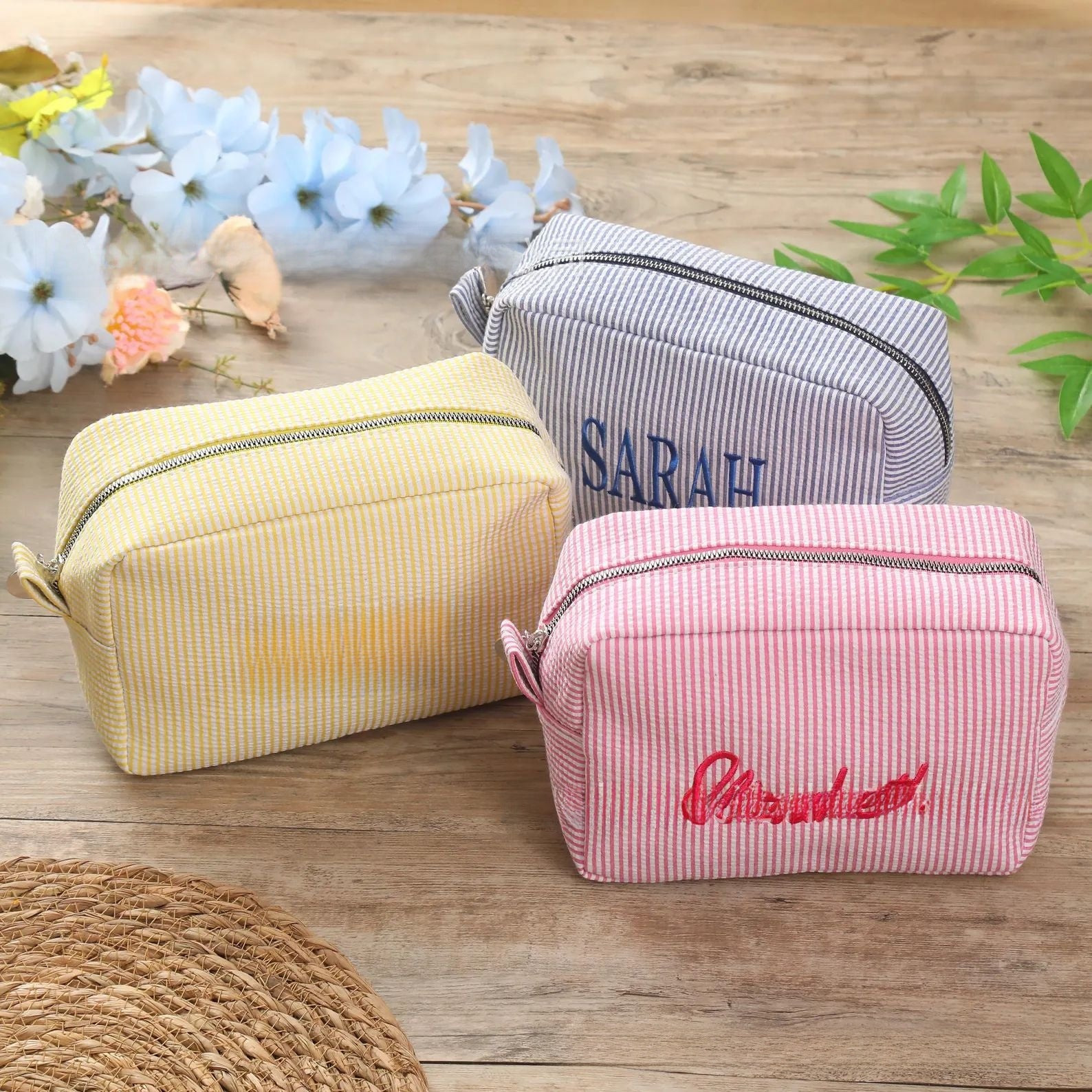 Personalized Embroidered Seersucker Cosmetic Bag