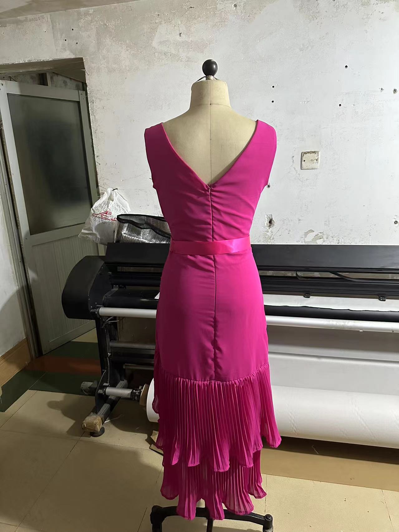 Style: A-line dress, V-neck, sleeveless.