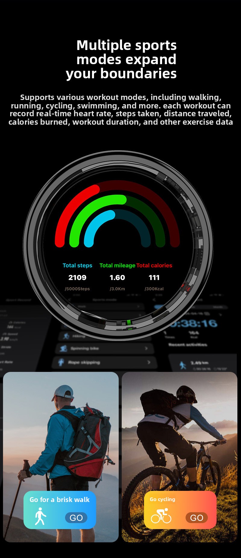 Additional Functions: Step counting, distance measurement, calorie calculation