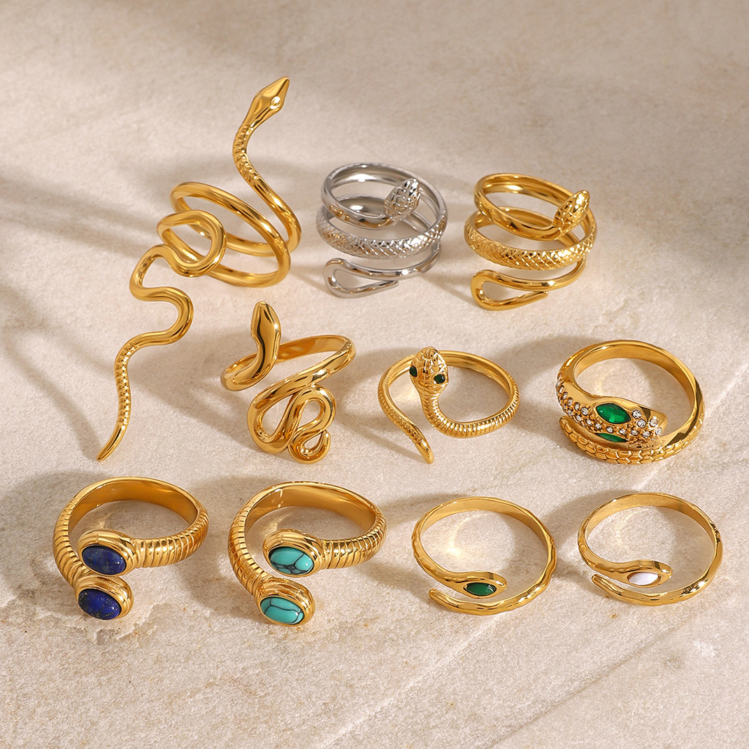 Snake Design: Unique serpent-shaped ring with intricate details for a bold fashion statement