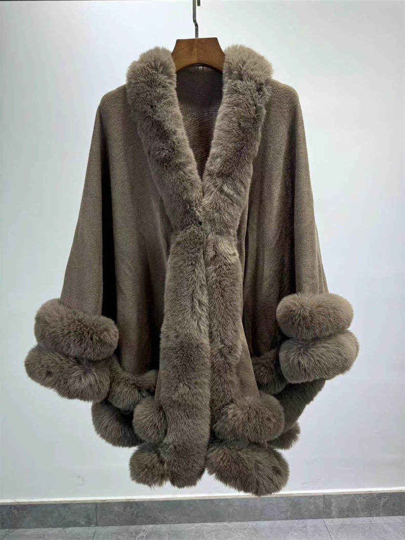 Stylish Design: Loose European and American style cape coat with a large fur collar for a fashionable look.