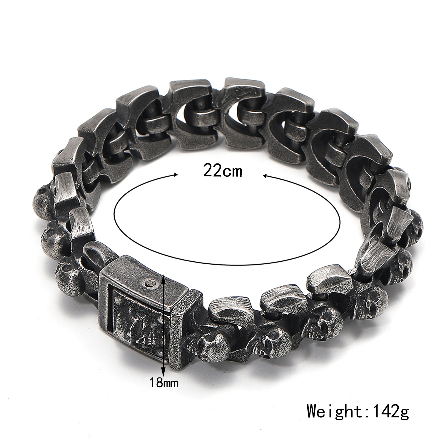Retro Skull Design: Unique and bold skull motif with an antique finish for a trendy punk look.