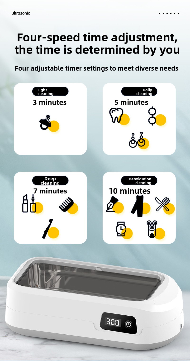 - Ultrasonic Cleaning Technology: Efficiently cleans glasses, jewelry, and dentures using high-frequency sound waves.