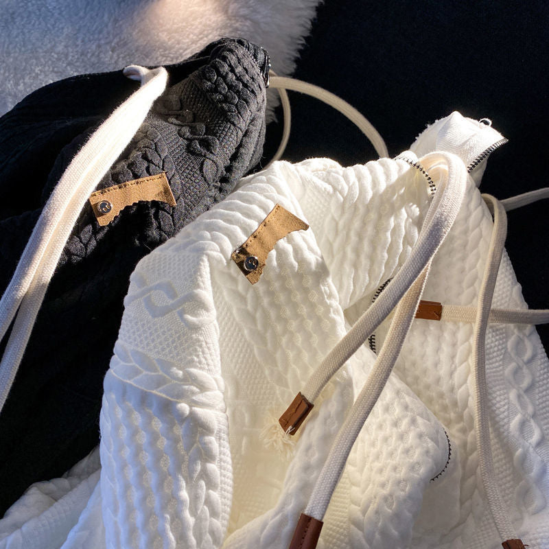 Waffle Pattern Zipper Jacket Loose Fit Retro Style